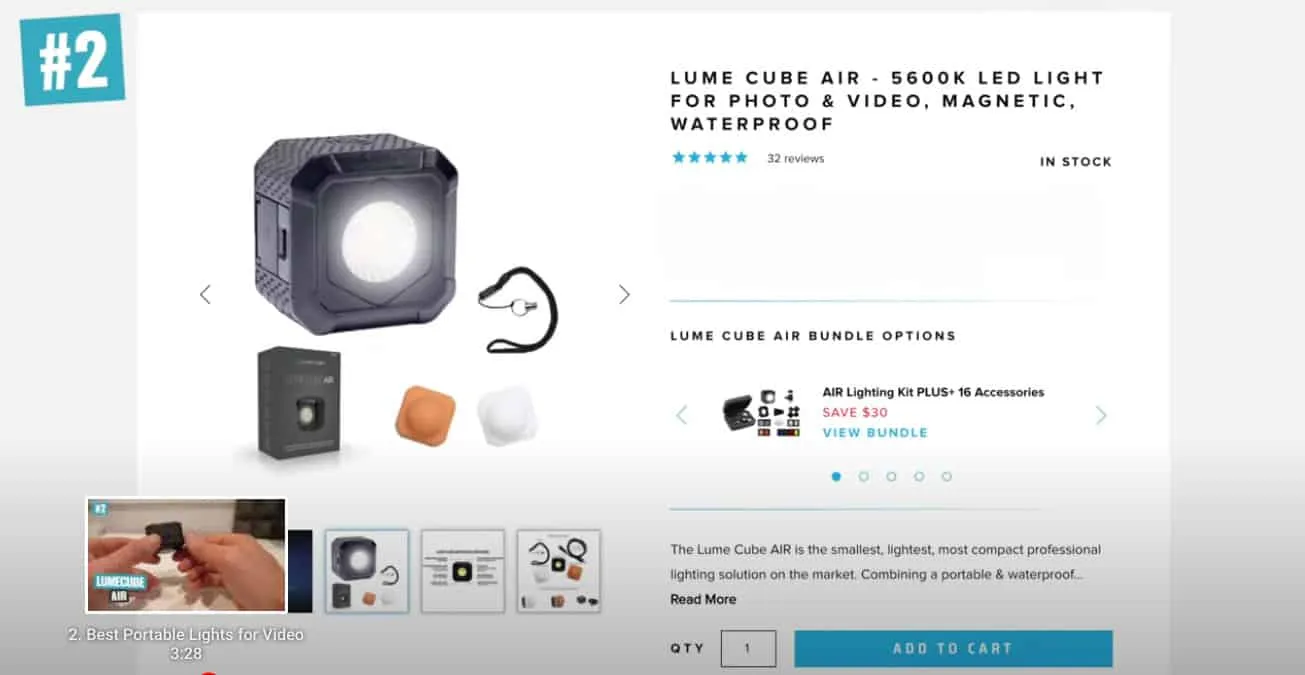 We have 3 portable lighting recommendations for brightening up the subject of the video as well as the background which are: