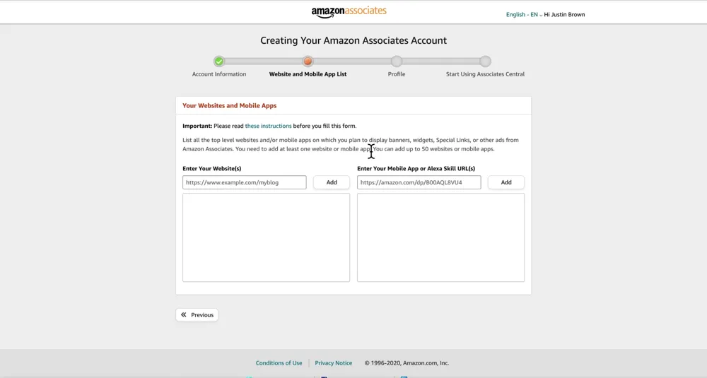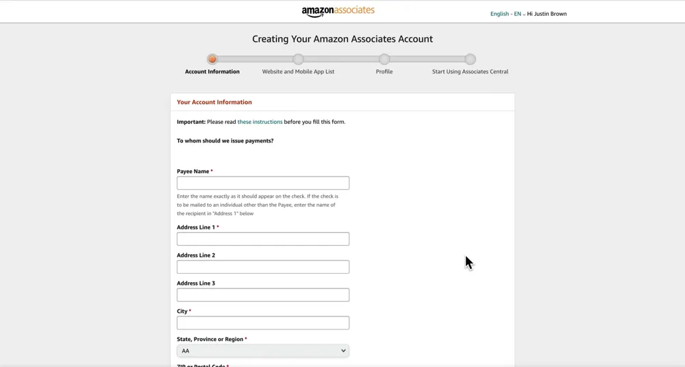 Your Amazon Associates Account Application