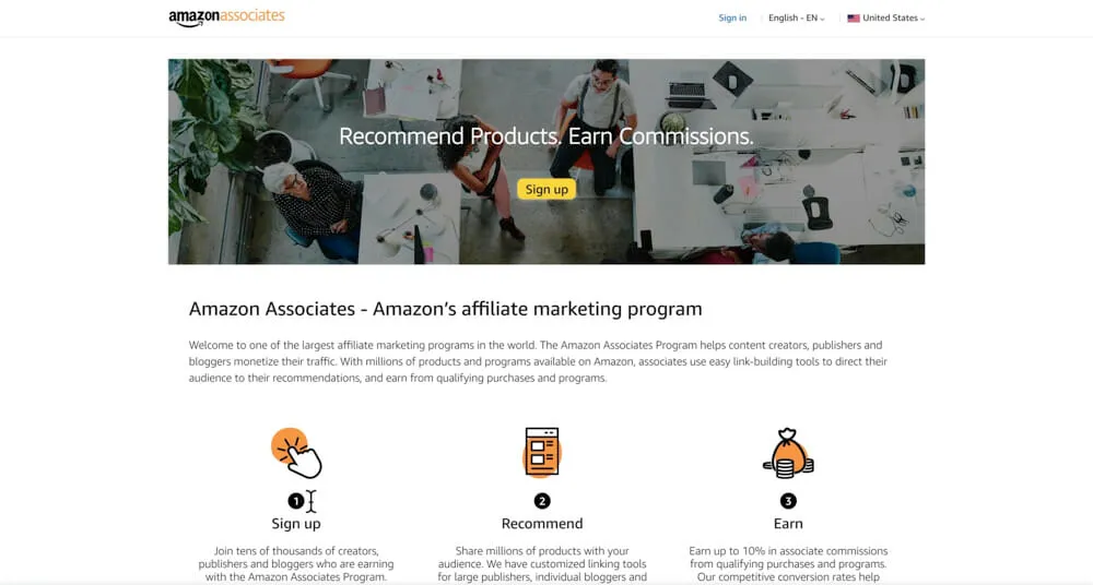 To become an Amazon affiliate marketer, you need to sign up to the Amazon Associates program. The process is less straightforward than other affiliate programs, so follow the step-by-step process above.