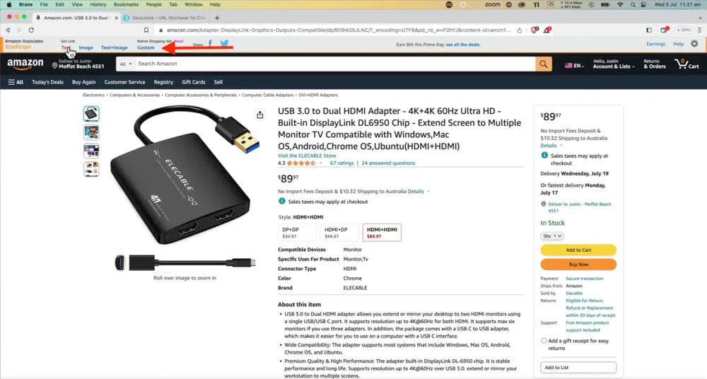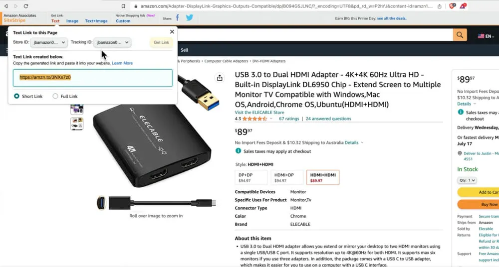 You’ll notice that there’s an Amazon Associates SiteStripe along the top of the webpage.