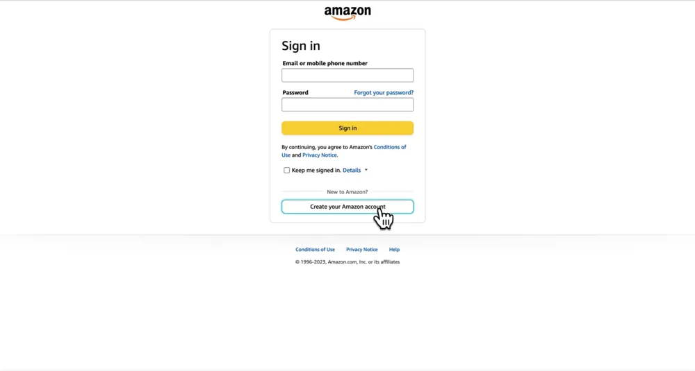 From here, it will prompt you to sign into your Amazon account. If you don’t have an existing Amazon account, select Create Your Amazon Account.