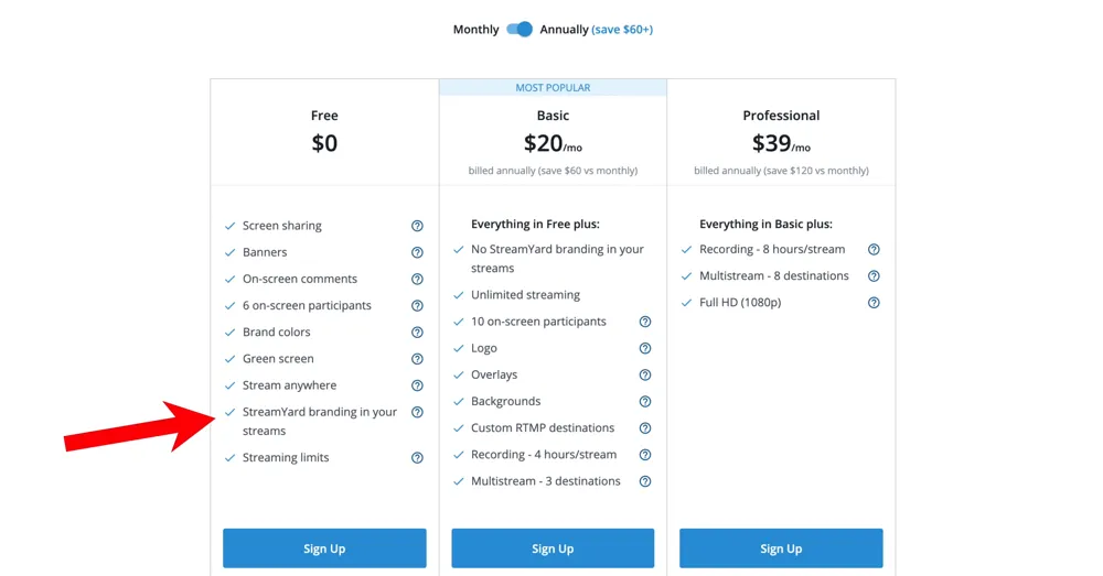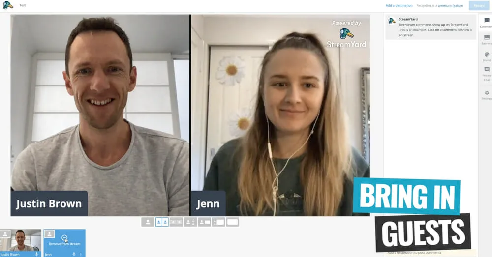 There is a free version of StreamYard available but it adds a StreamYard watermark to your livestreams. If you want to remove their branding, which we strongly recommend, you’ll need to jump on a paid plan.