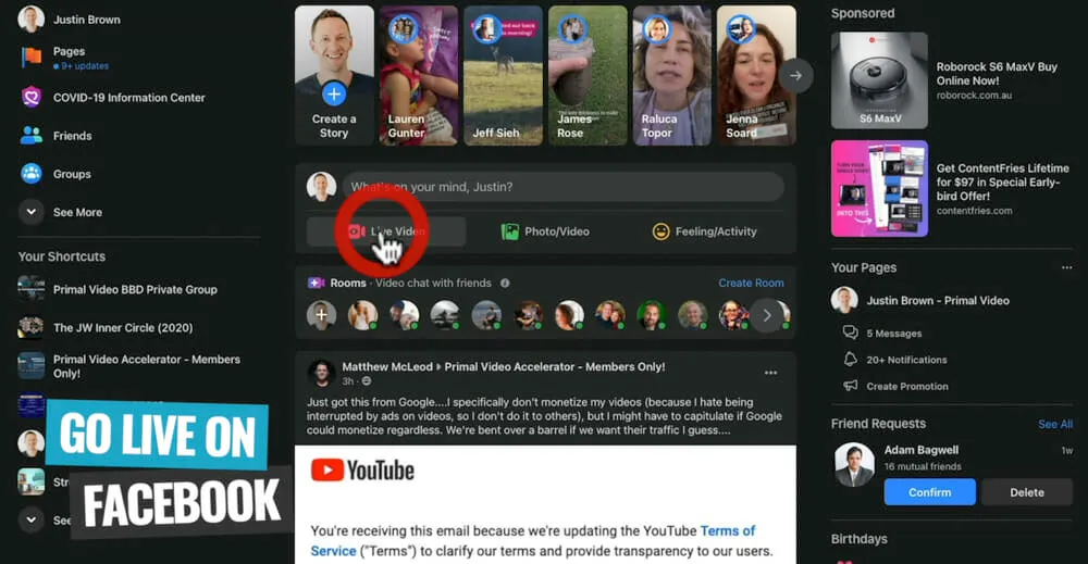 The simplest and most basic option for going live on Facebook is just to do it directly through the Facebook website.