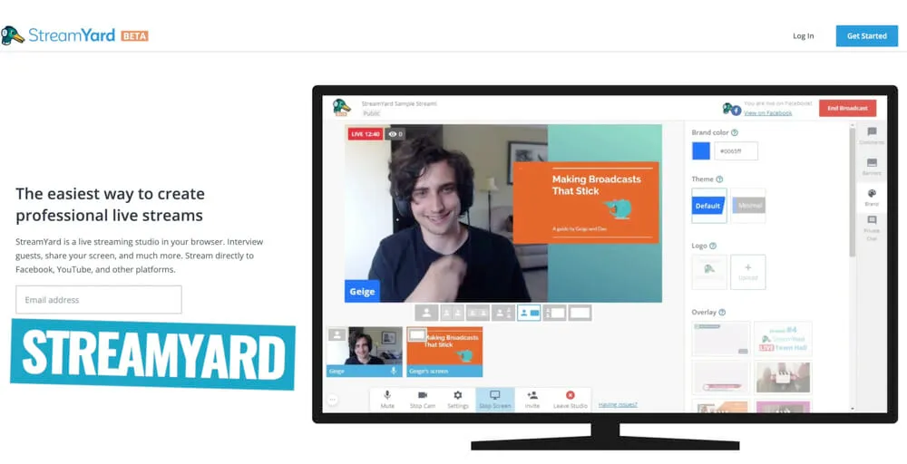 StreamYard is a Facebook live streaming software that runs in your browser, meaning you don’t need to download and install anything! So it will run on pretty much any computer out there, even low powered computers like a Chromebook.