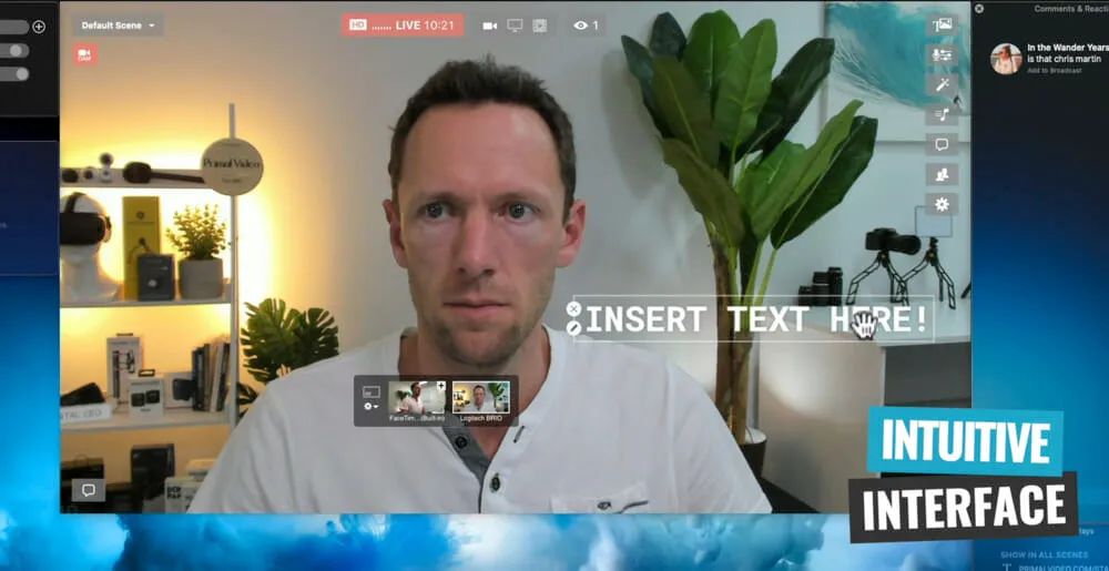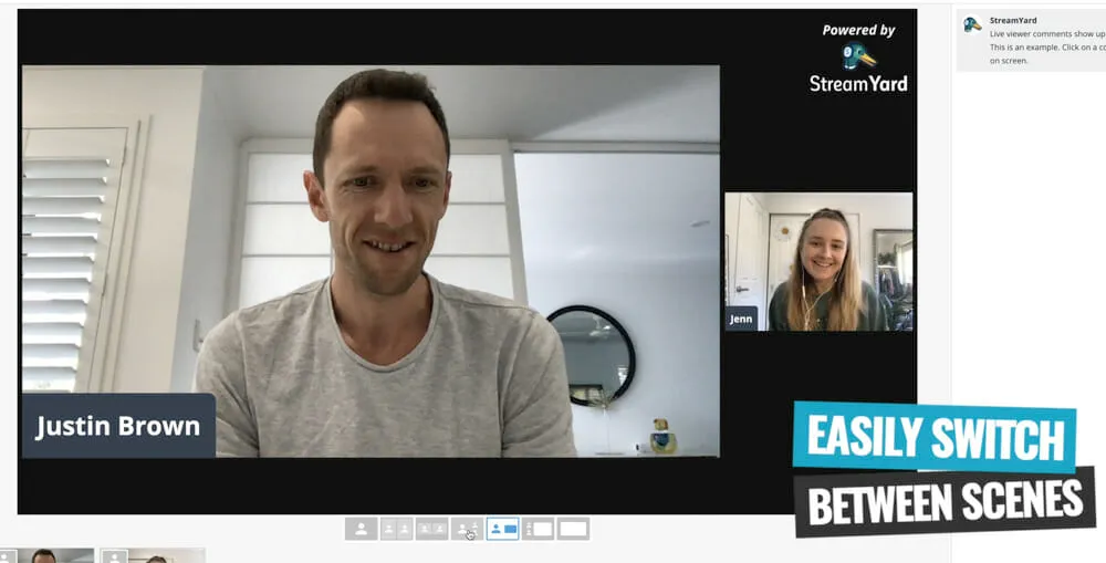 It’s also super easy for you to switch between different scenes and layouts while you’re live. For example you could switch from a 50/50 screen split with you on one side and your guest on the other, to a full screen display just with the click of a button.