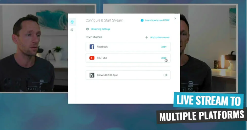 You have the ability to live stream to multiple platforms directly built into Manycam. This isn’t done through a third party service which does mean you’ll need a solid internet connection as it will push out one feed to Facebook and one feed to YouTub for example, taking up twice the bandwidth.