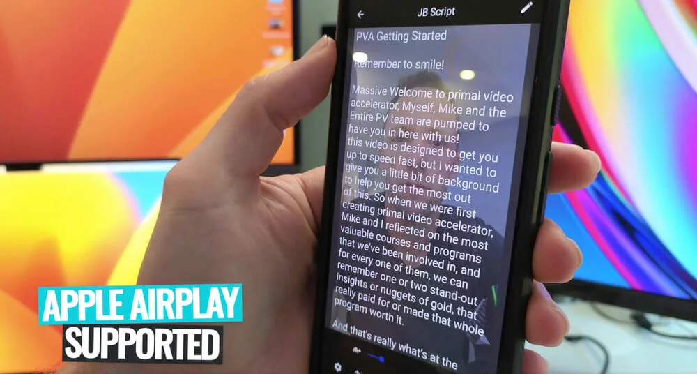 So you have the ability to read off your full script or even just bullet points while doing things like an Instagram Live or a Facebook Live.