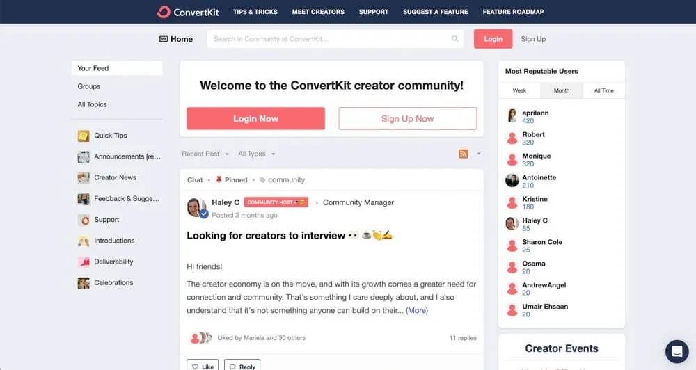 There’s an active ConvertKit community but responses are often from ConvertKit staff. The answers are usually to email support or to read an article but it’s good to have that interactive community there. The response times in the community are generally within a couple of days.
