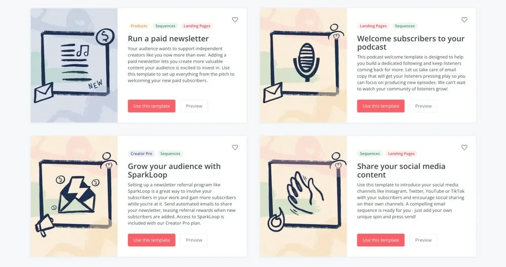 There’s over 40 automation templates including affiliate course promotion, abandoned cart, upselling and basic email courses.