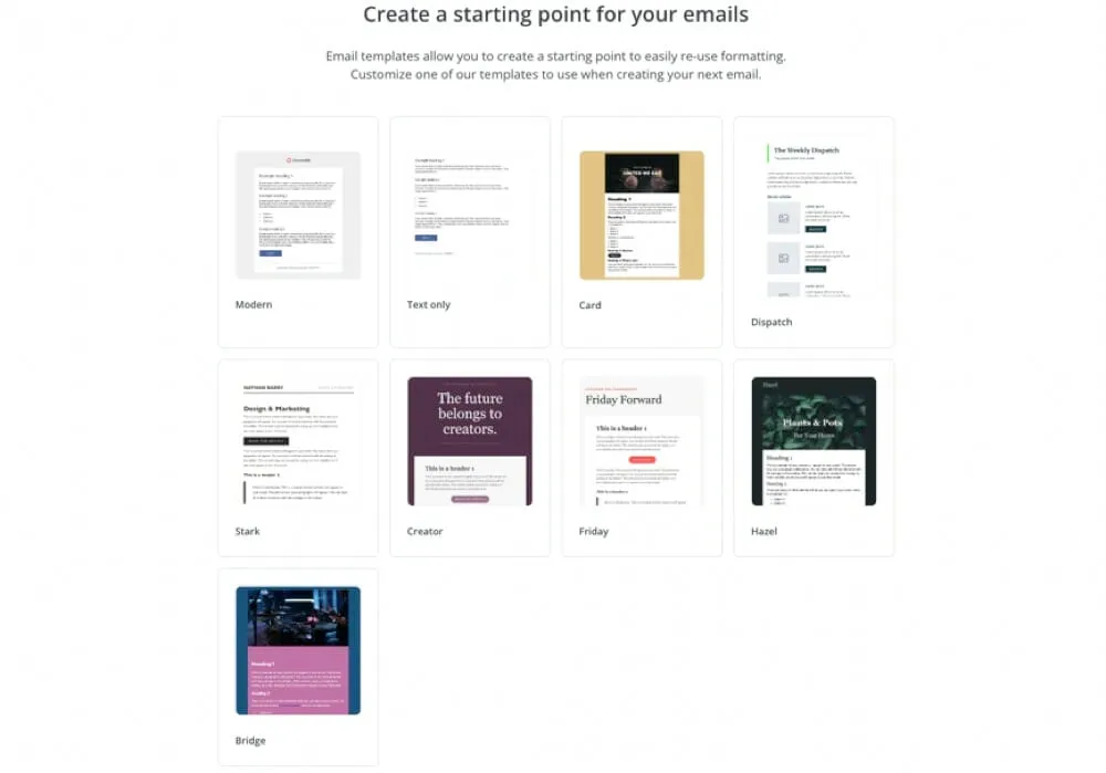 If you just want to create basic or text-only email campaigns, you’ll be able to get the job done super easily. The text-only template feels like writing a work email - great for a personalized email effect.