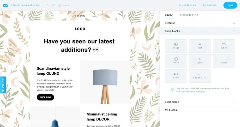 There’s also a HTML editor which allows you to get more flexibility in your email designs.