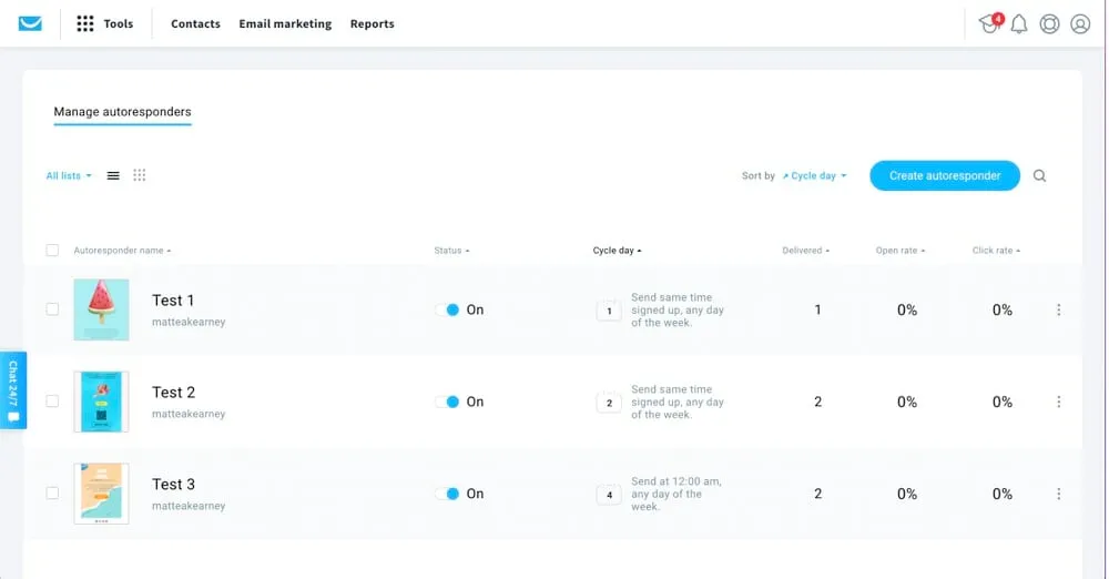 The autoresponder tool isn’t very fluid. You can’t build out multiple emails at once as you can’t edit them within the same view. It also looks a bit messy as all emails are displayed in the same area, regardless of which list they’re attached to.