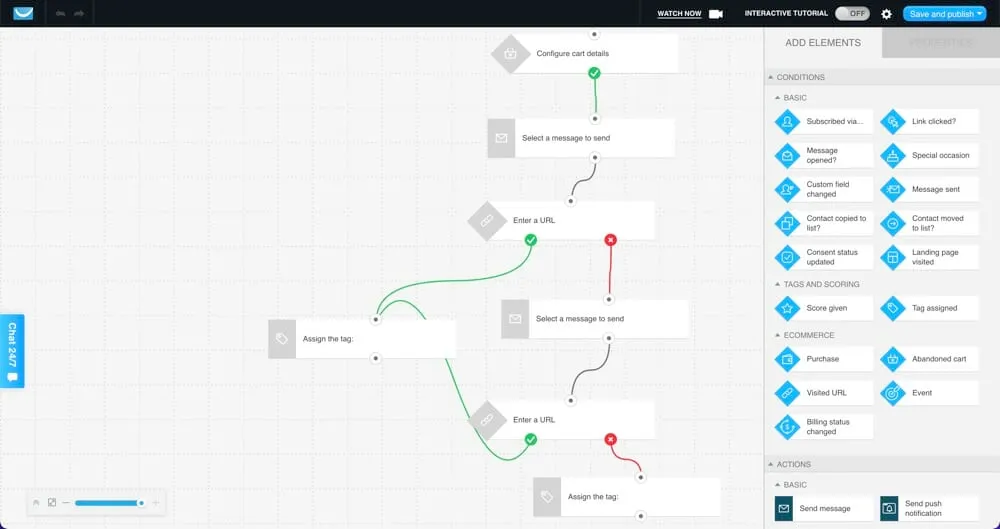 GetResponse provides access to this feature as well as website live chat and SMS marketing. However, only the web push notifications are integrated with the automation builder.