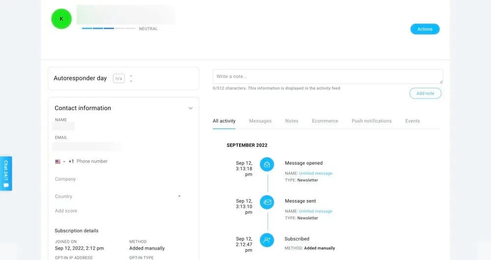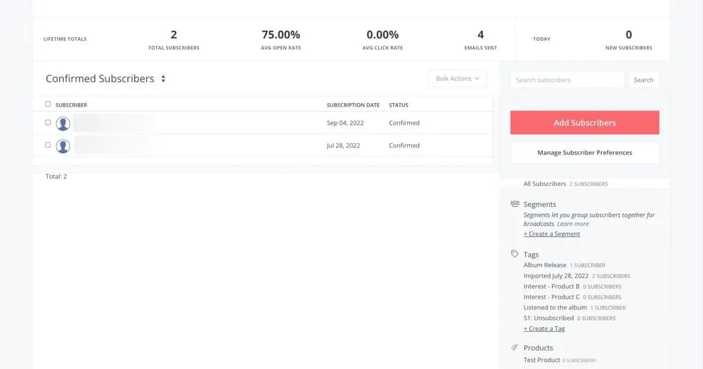 | Manage contacts⭐⭐⭐⭐ | Some of the functionalities are a bit limited but it’s easy to perform the actions that are available. When you enter the Subscribers tab you can easily see all the info and tools you’d need access to. |