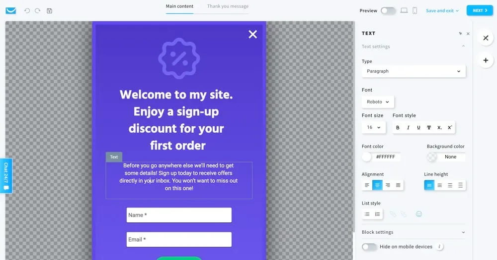 However, the builder is missing a few of the more advanced email marketing features. For example, there are two tools that allow you to really customize and personalize your email campaigns: the ability to hide content on mobile devices and conditional content.