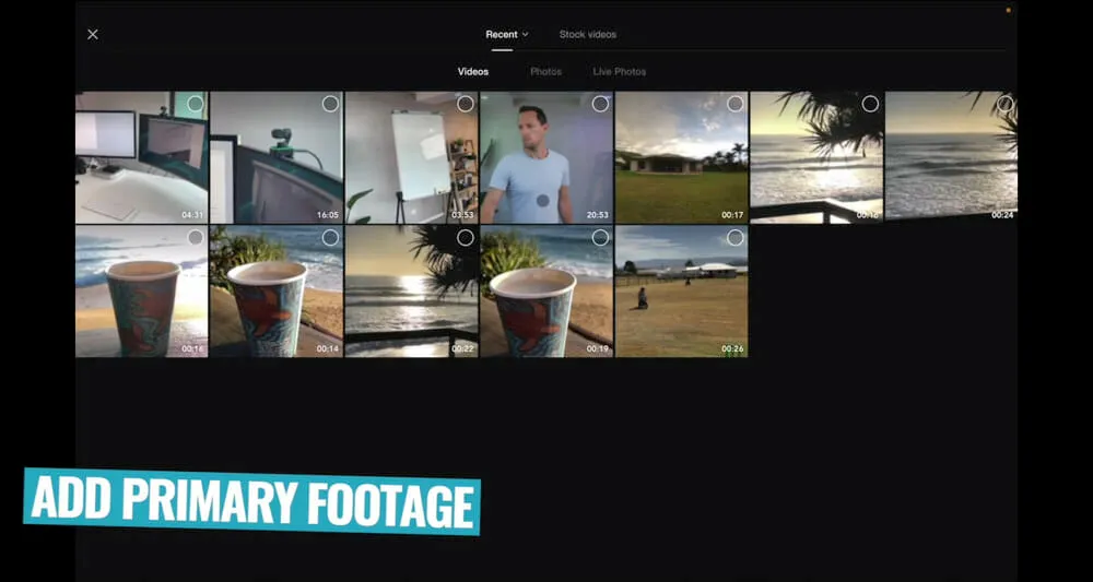 So select any primary footage clips and tap Add.