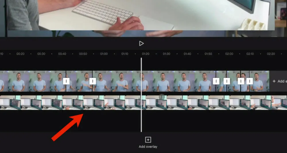 You can edit the overlay clip using the same tools used to edit the primary footage. So go through and trim or cut the overlay video clip so you’ve only got the sections you want to use.