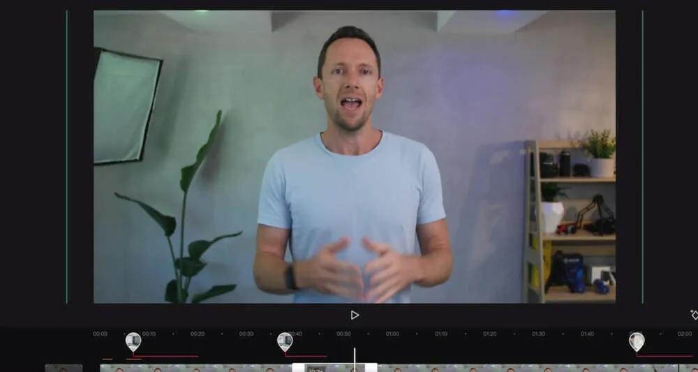 - Video Editing Timeline: Along the bottom is your timeline where all your footage and video elements are located