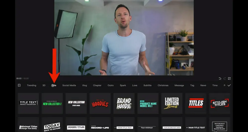 Go to Text Templates in the bottom menu and you’ll see a ton of presets and cool things that you can customize up for your videos.