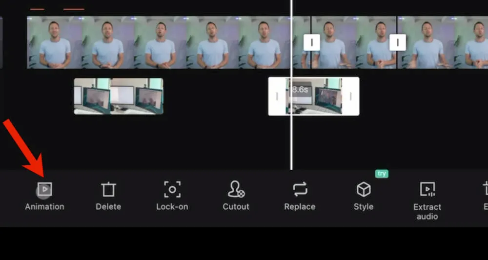 To add transitions and effects to your overlay footage, select the clip on the timeline and tap Animation.