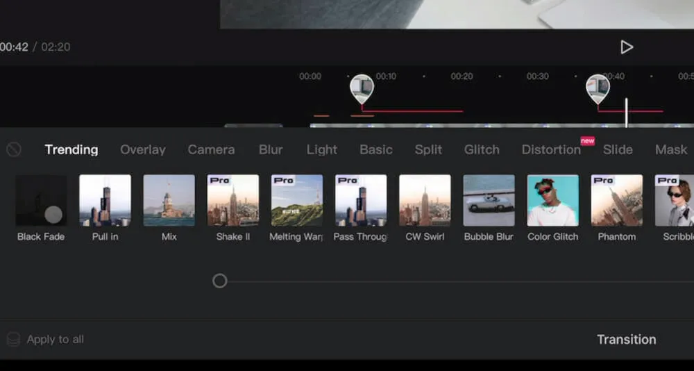 PRO TIP: Don’t go overboard with these types of transitions - that’s an easy way to quickly cheapen your video.