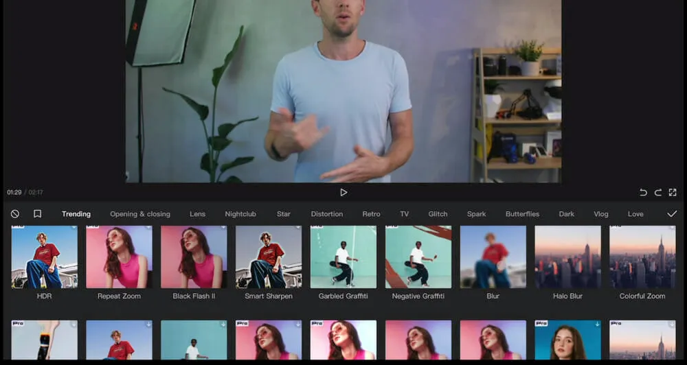 If you go to Filters, you’ll find a lot of Instagram-style filters that you can apply to your videos.