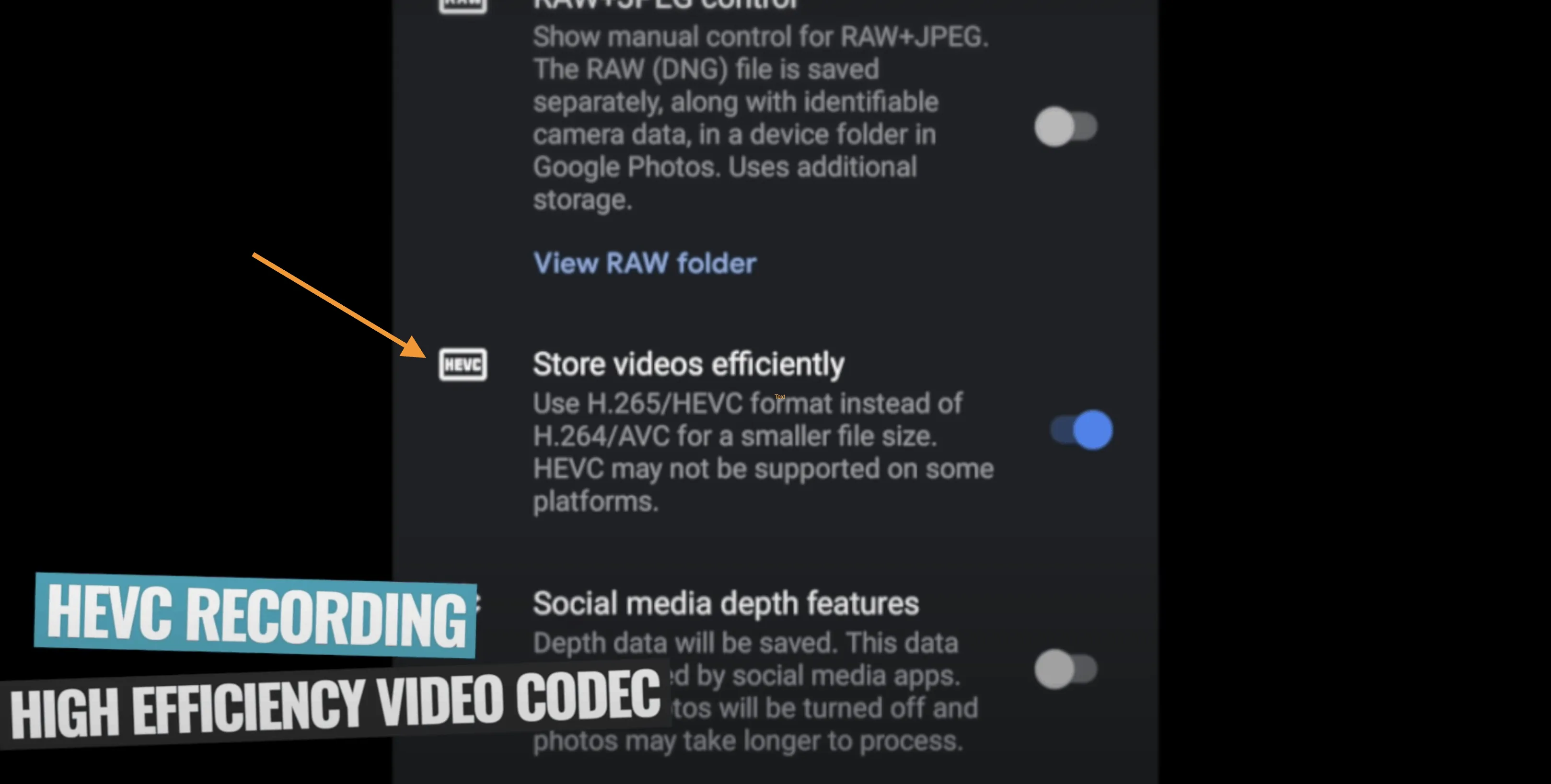 HEVC, short for High Efficiency Video Coding, is something that Android users can turn on or off. Enabling HEVC will allow you to create smaller video files, but the downside is that some video editing software is unable to read files that are captured in HEVC.