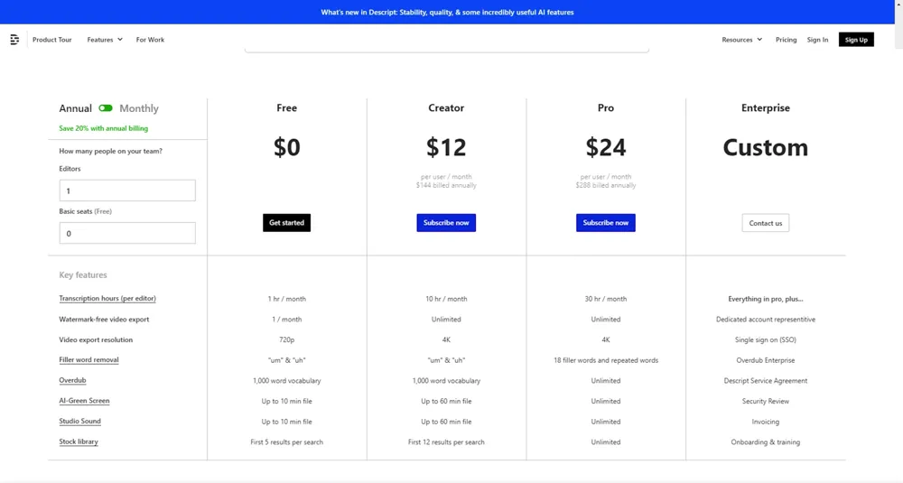 The second tool we recommend is Descript.