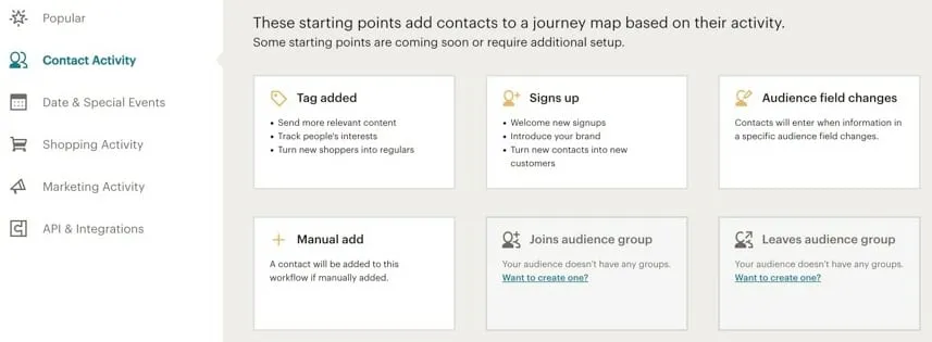 However, Mailchimp’s marketing automation isn’t basic - there’s a wide range of tools to help you build out effective workflows. It also has an easier to use and more intuitive automation builder.