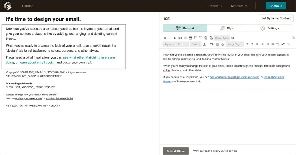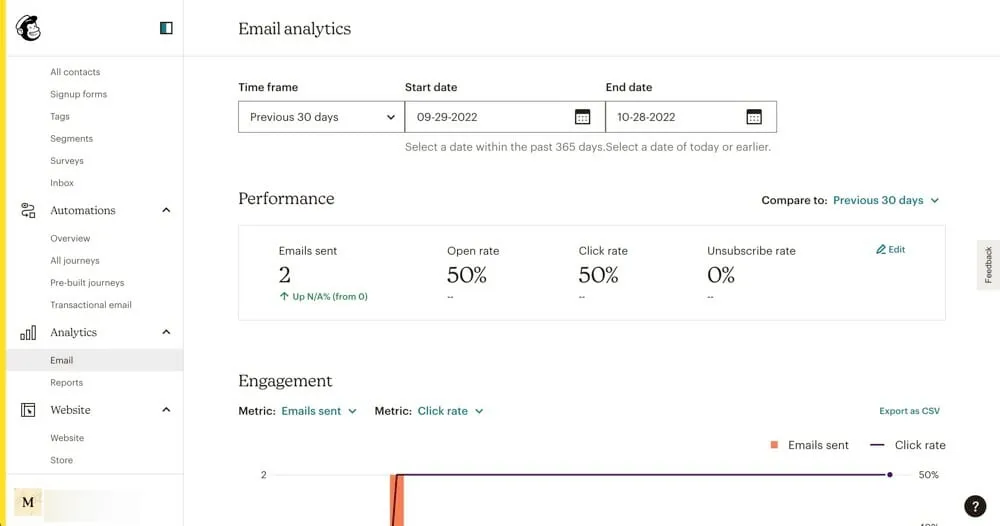 Mailchimp still has a solid email builder and templates. If you want to create more basic emails and don’t require that higher level of customization, Mailchimp would tick your boxes.