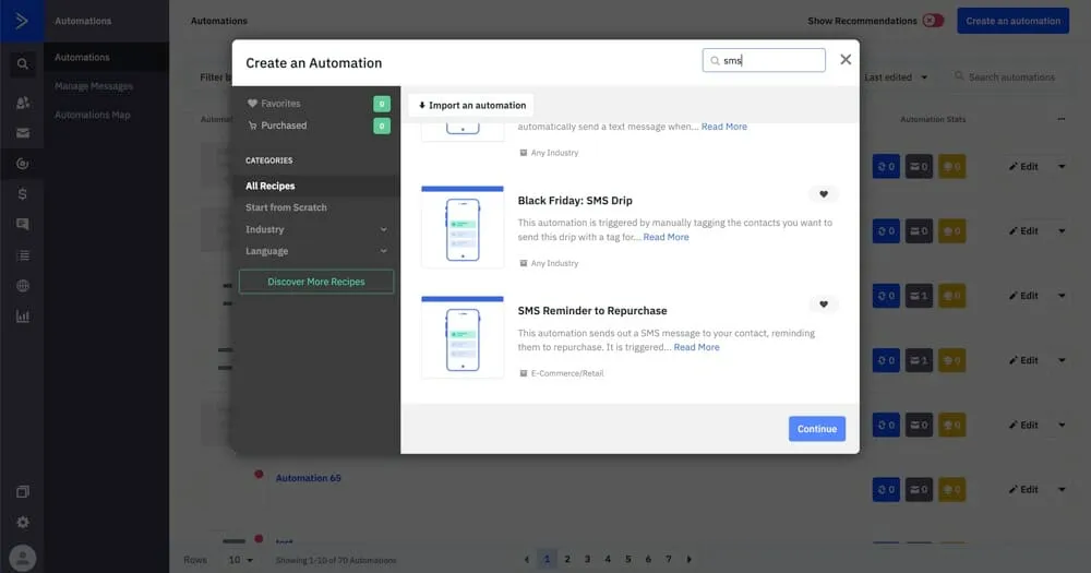 There are around 25 automation templates for things like upselling, ecourse delivery and failed billing reminders.