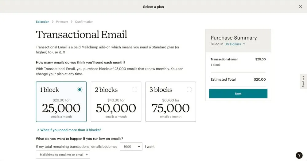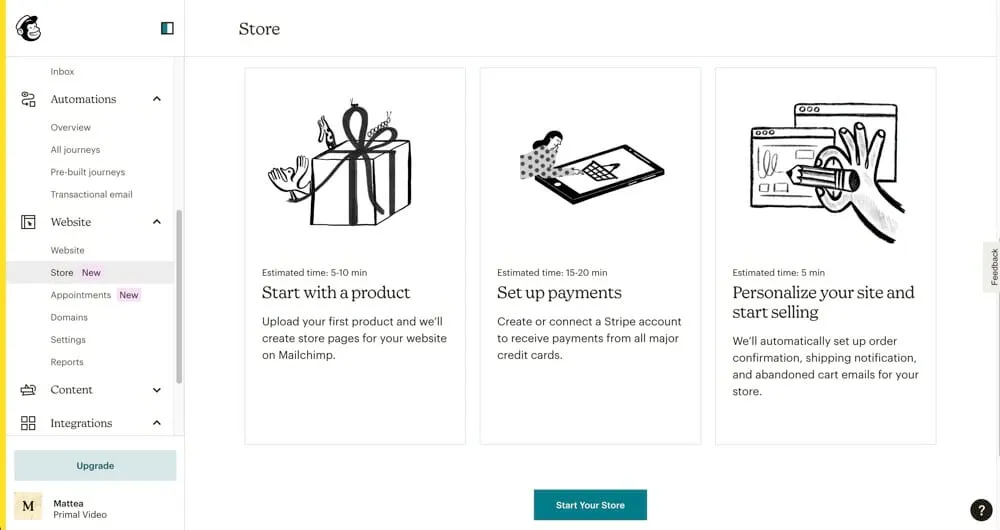 If you want to utilize MC’s ecommerce features, you’ll likely also want to purchase one of the Website & Commerce Plans. This is an additional plan that you can use independently or alongside one of the marketing platform plans we mentioned above.