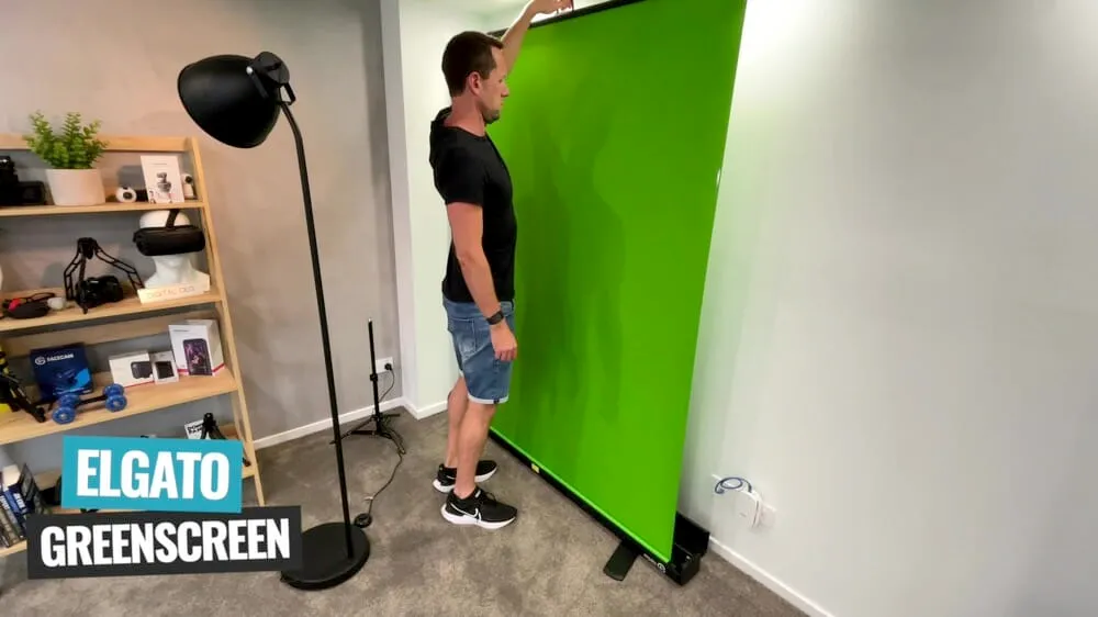 We have an Elgato Green Screen that we can pop up at any time. We use this mostly for recording those mini Justin’s you might have seen walking around the bottom of our YouTube videos.