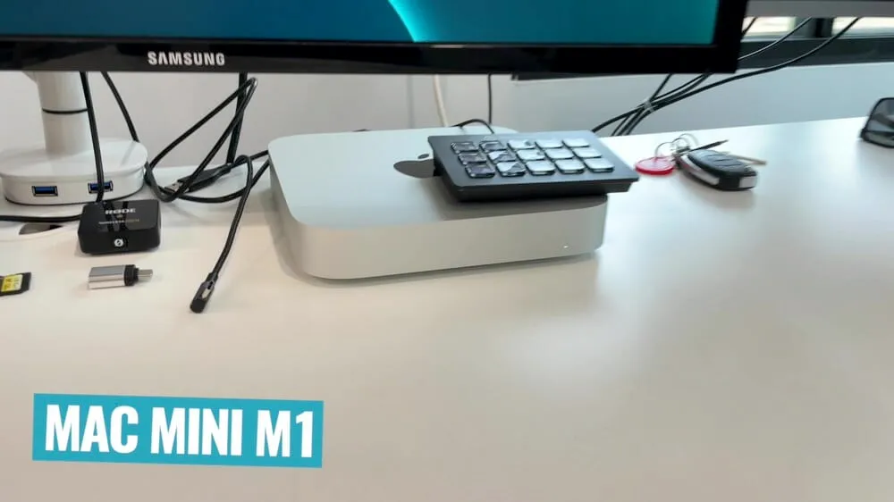 As we mentioned earlier, Justin uses a Mac Mini M1. It’s the base model but it’s more than enough for what he needs.