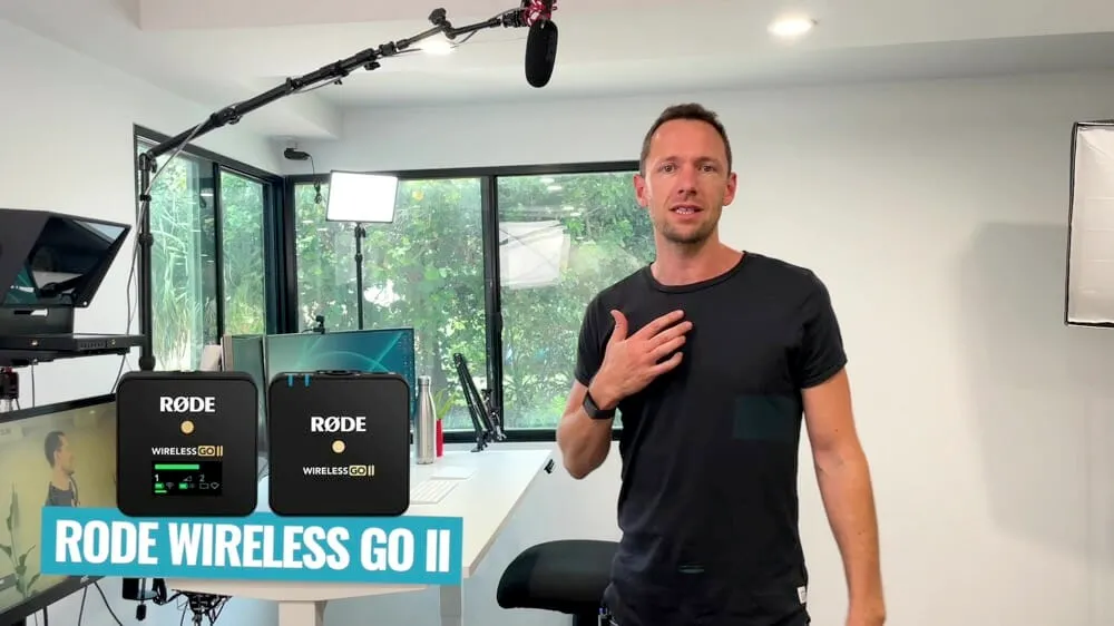 As a backup, he also always uses a Rode Wireless Go II which is a lavalier mic taped under his shirt. This is great if anything goes wrong with the primary audio.