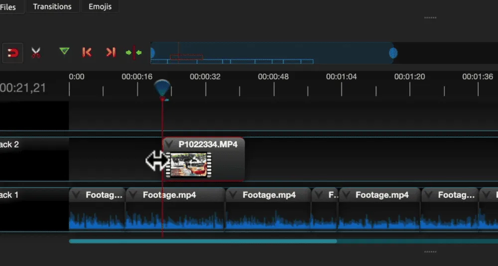 You can also pick up b-roll footage clips and move them wherever you want them to be placed along the timeline.