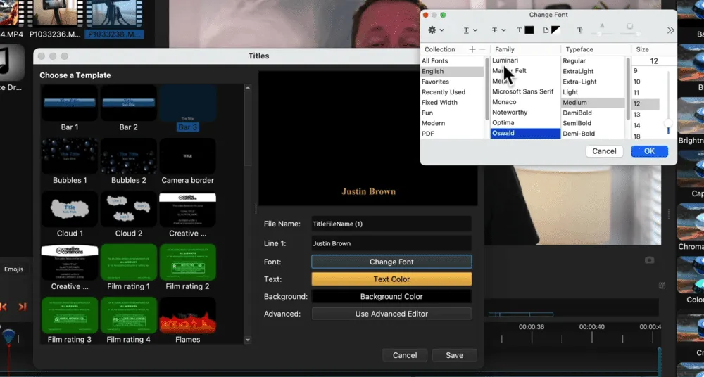 Once you’ve selected a title template, insert the text you want in the Line 1 field. You can change the font, text color and background color.