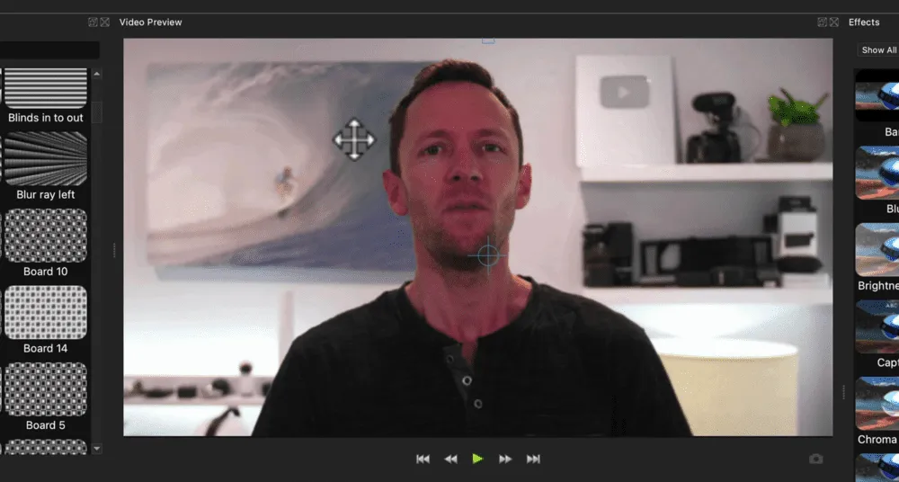 There are other effects you can add to your clips under the Effects window on the right hand side. If you can’t see the Effects window, go to View in the menu bar, then Docks and make sure Effects has a tick next to it.
