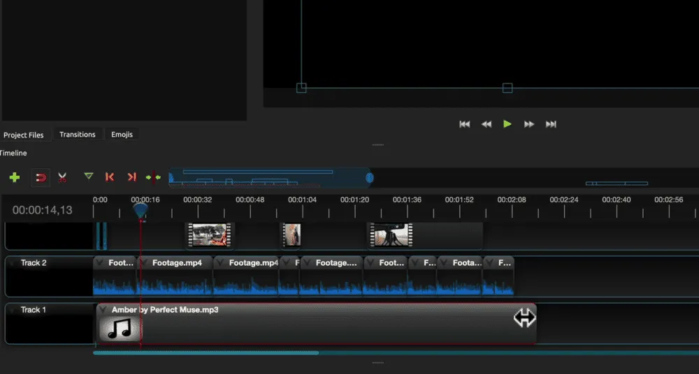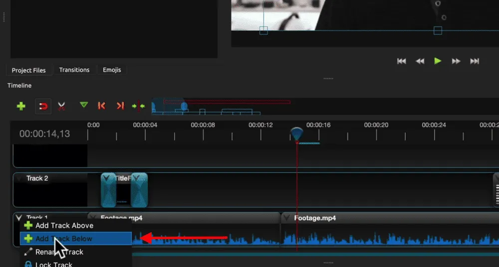 Usually you want to add your music to the very bottom layer. But since the primary footage is on Track 1, we’ll need to add a track.