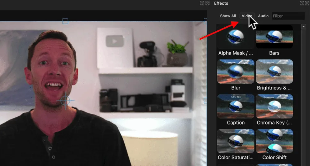 This is where you can add a green screen effect, blur effect, image stabilizer, object tracking and there are even some color grading tools which we’ll cover soon.