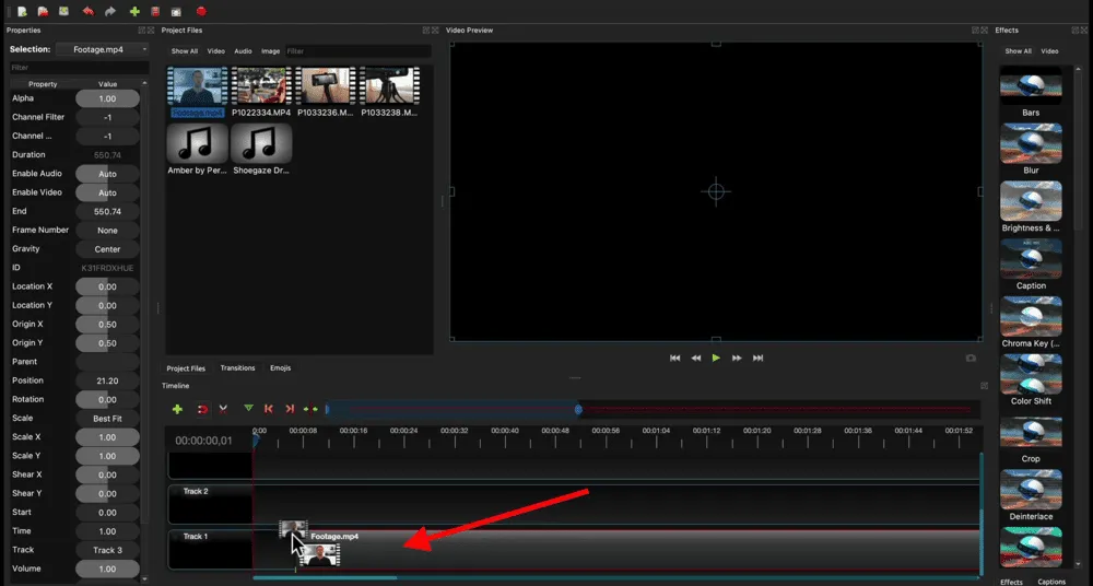 It’s always a good idea to place your primary footage on Track 1. Then you can build up with your b-roll or overlay footage.