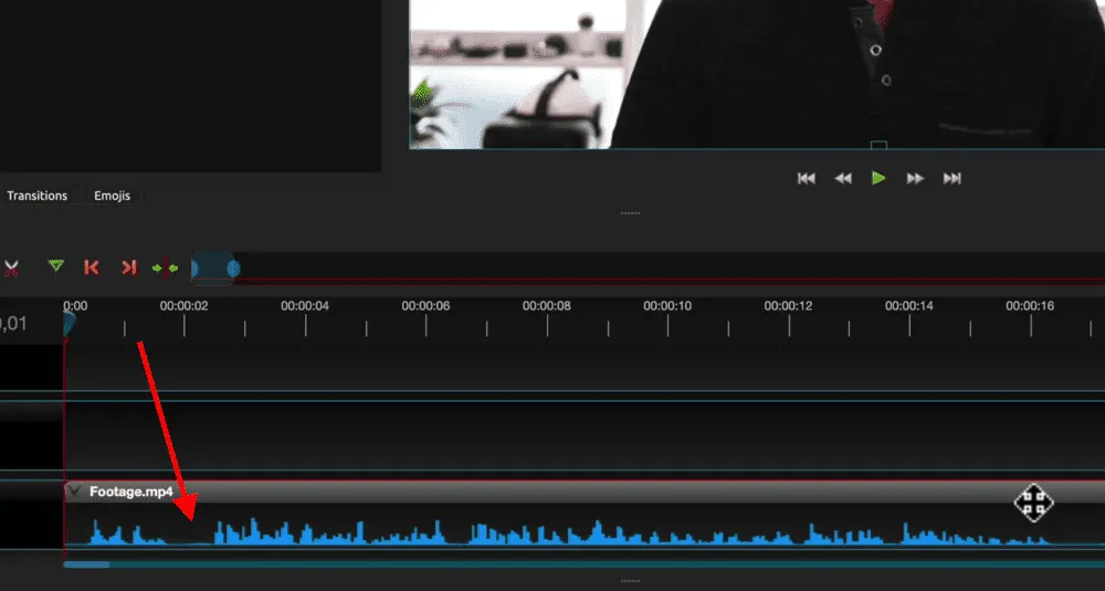 Then OpenShot analyzes the audio in that clip and will display a visual representation of the audio on-screen.