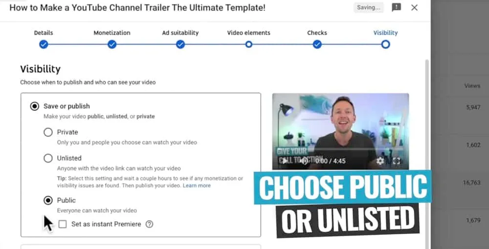 When you upload a YouTube video, you can choose to make it a public video or an unlisted video. But which one should you choose for your channel trailer?