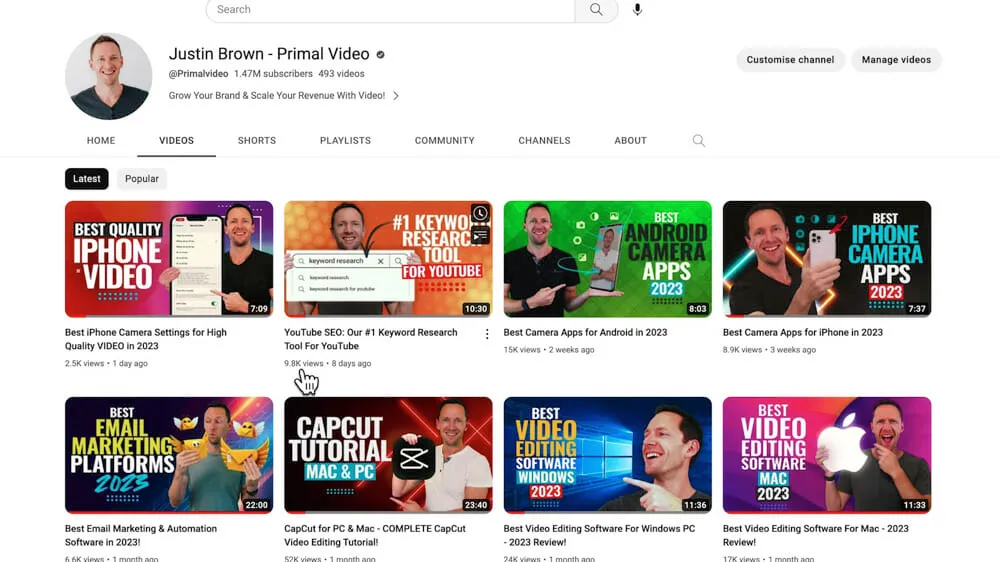 Let’s take a look at the Primal Video YouTube channel page as an example.