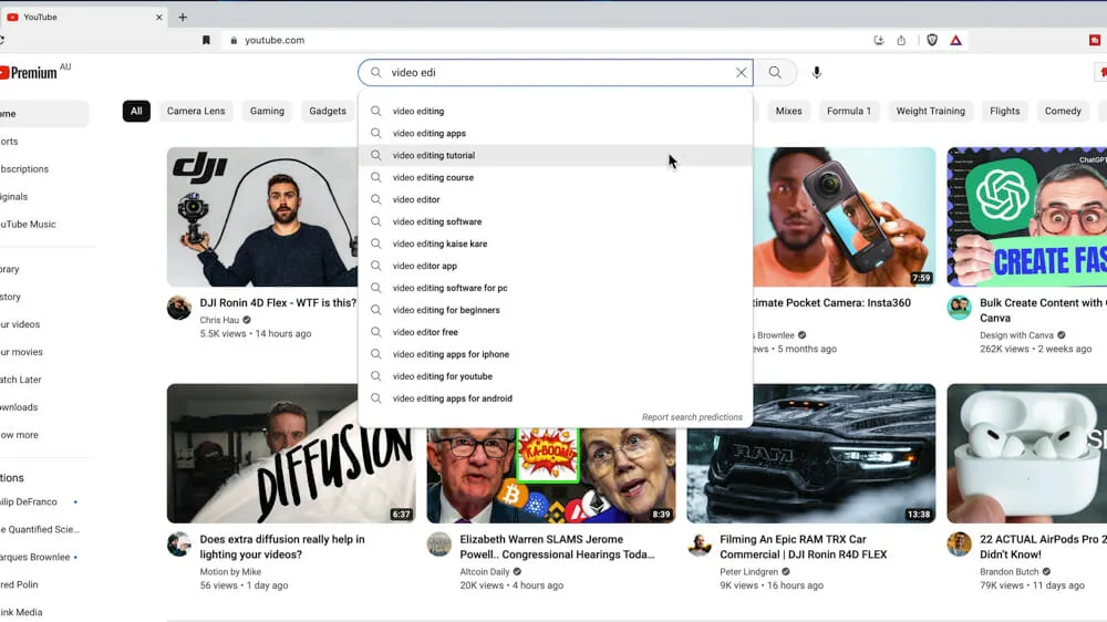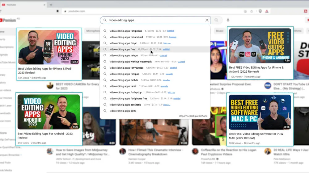 Take a look at the example below, just from starting to type in ‘video editing’.