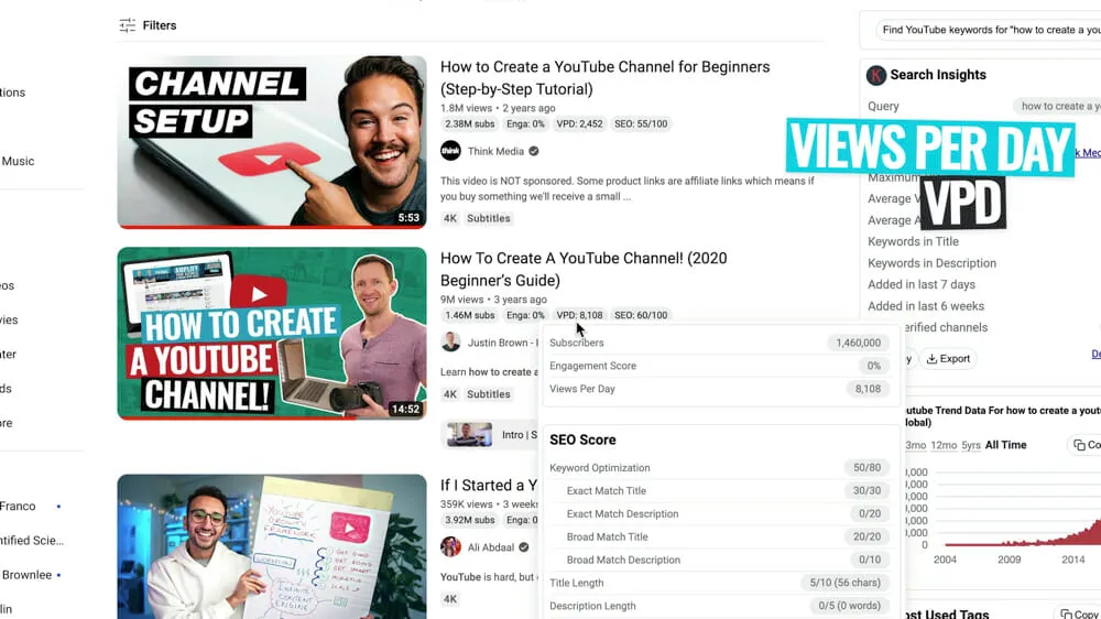 - Views per day (VPD) which is a great indicator of whether the video is still performing