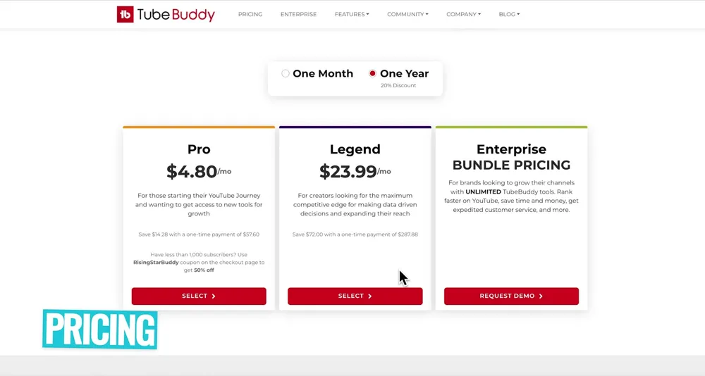 To be able to A/B test your thumbnails, you’ll need to jump on TubeBuddy’s Legend plan which costs $23.99/month when charged annually.