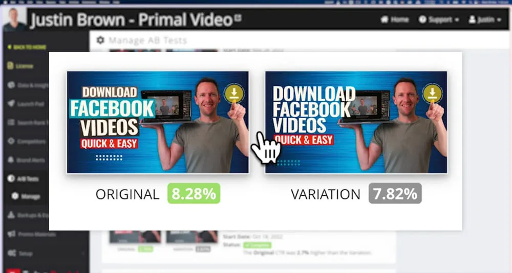 Using effective custom YouTube thumbnails is a guaranteed way to increase your YouTube thumbnail click through rate. And the best way to increase your click through rate is with A/B testing. Plus don’t forget, more clicks on your video equals more YouTube views!