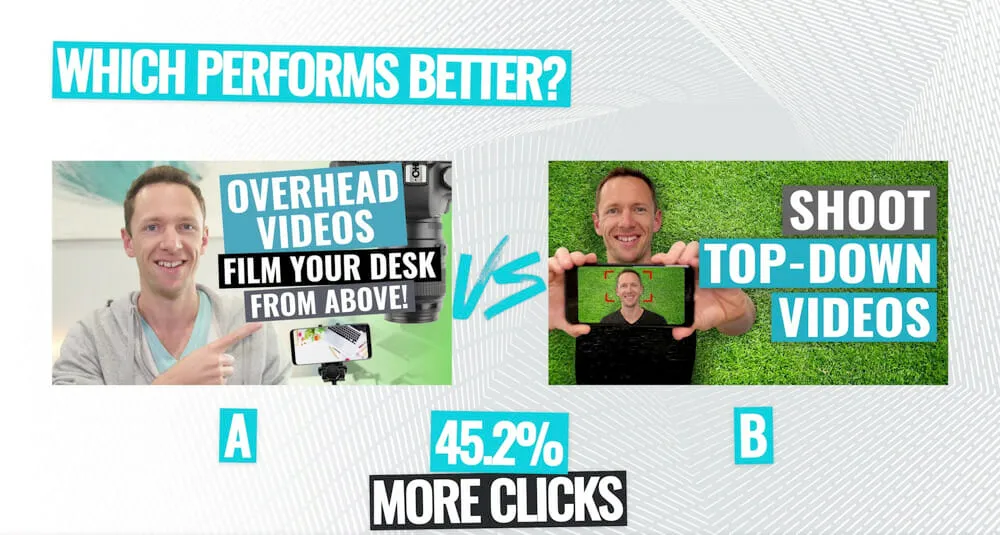 To show you just how powerful this strategy is (& how hard it is to guess the highest performing thumbnail), we’ve included some examples of A/B tests we’ve run on YouTube videos on our channel. See if you can guess which one was clicked more!