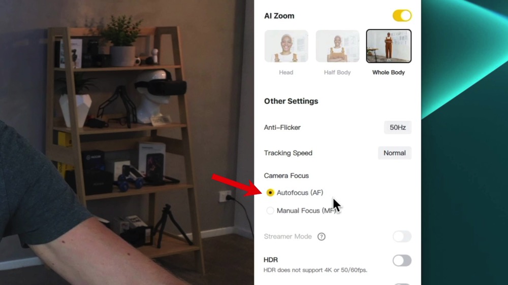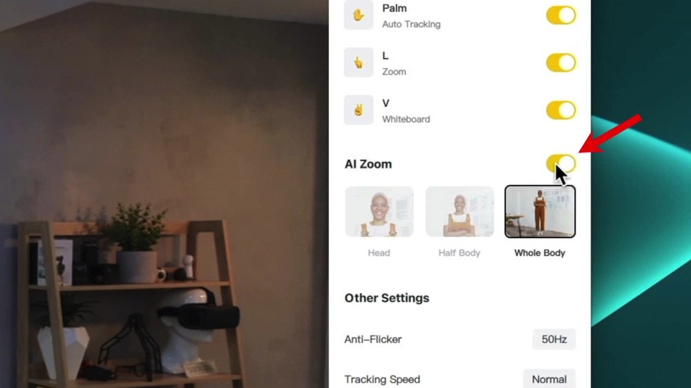 Turn on AI Zoom and the webcam will continually zoom to your desired preset